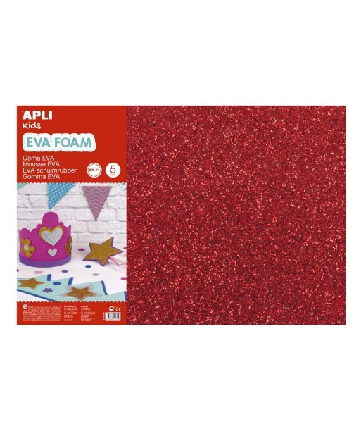 A goma EVA é um material ideal para artesanato tanto para uso doméstico quanto para uso escolar.¶É macio, flexível, fácil de cortar, colar e pintar.¶Também é à prova d'água e moldável por calor.¶Material básico para fazer fofuchas, máscaras, coroas, fantasias e todo tipo de artesanato.¶¶Goma EVA vermelha com acabamento glitter¶Tamanho 600 x 400 mm¶Espessura: 2mm¶Pacote contém 5 folhas da mesma cor¶¶