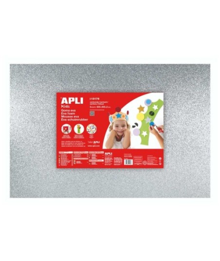 A goma EVA é um material ideal para artesanato tanto para uso doméstico quanto para uso escolar.¶É macio, flexível, fácil de cortar, colar e pintar.¶Também é à prova d'água e moldável por calor.¶Material básico para fazer fofuchas, máscaras, coroas, fantasias e todo tipo de artesanato.¶¶Goma EVA prateadas com acabamento glitter¶Tamanho 600 x 400 mm¶Espessura: 2mm¶Pacote contém 5 folhas da mesma cor