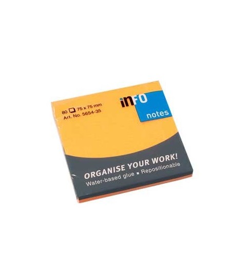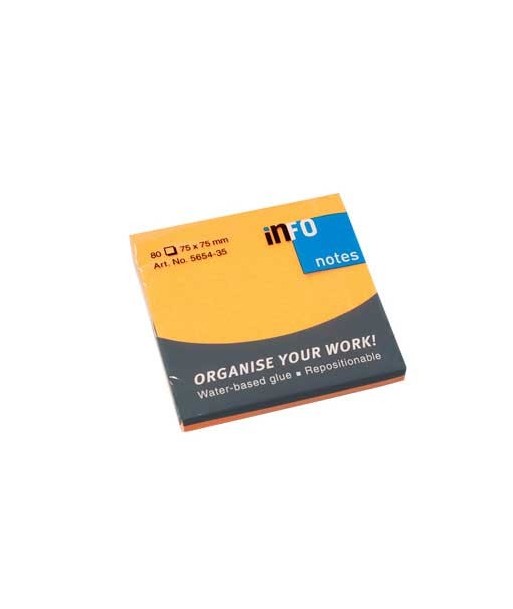 UM CLÁSSICO INDISPENSÁVEL. Ideais para notas, recados e apontamentos. São fáceis de remover e de recolar.¶¶Sem resíduos, removível e reposicionável.¶Adesivo à base de água sem solventes.¶Certificado TFSC®¶¶Tamanho da folha: 75 x 75 mm¶Quantidade: 80 folhas¶Cor: Laranja Forte¶¶