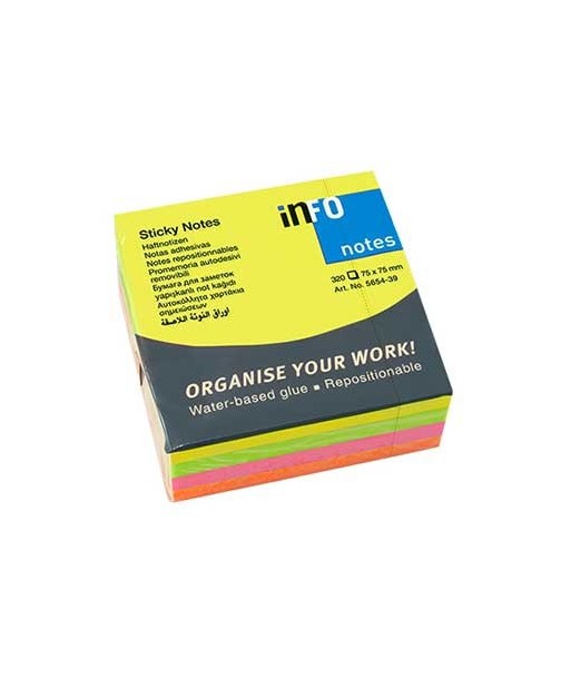 UM CLÁSSICO INDISPENSÁVEL. Ideais para notas, recados e apontamentos. São fáceis de remover e de recolar.¶¶Sem resíduos, removível e reposicionável.¶Adesivo à base de água sem solventes.¶Certificado TFSC®¶¶Tamanho da folha: 75 x 75 mm¶Quantidade: 320 folhas ¶Cor: Laranja, Verde, Amarelo e Rosa¶¶