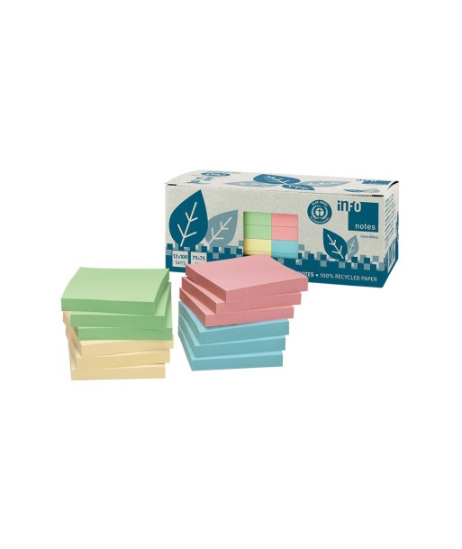 Bloco Notas Aderentes 075x075mm Reciclado 4 Cores 100F 12un