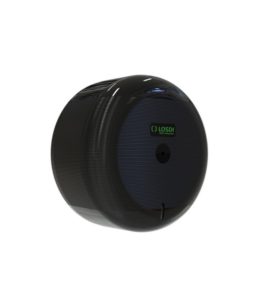A nova linha ECO-LUXE nasce da vontade de contribuir para a melhoria da higiene nos espaços públicos proporcionando qualidade, funcionalidade e design a preços competitivos. ¶Foi concebida para obter um desempenho ótimo, com base na vasta experiência da LOSDI como marca consolidada na área da higiene profissional e industrial em mais de 45 países. ¶¶Além disso, seu design diferenciado e atraente revela os altos padrões de qualidade da LOSDI, permitindo assim retirar o papel de forma simples e agradável.¶¶Design, qualidade e funcionalidade. Estas são as três principais características do dispensador de papel higiénico com dispensador central da nova linha ECO-LUXE . ¶¶A distribuição folha a folha de papel evita a contaminação cruzada dos utilizadores, mantendo o restante do rolo protegido dentro do dispensador. ¶Uma característica de vital importância para a adaptação à ' economia low touch ' ou 'economia de baixo contato' gerada pelo novo coronavírus.¶¶Reduza o consumo de papel graças ao sistema de distribuição controlado. ¶A extração central de papel folha a folha favorece o uso responsável do papel e evita uso desproporcional.¶¶É confecionada em material plástico 100% reciclado na cor preta e possui um belo design que intercala superfícies lisas com áreas onduladas que conferem ao produto um estilo único e diferenciador. ¶Vem equipado com fechadura plástica e chave para facilitar a troca de consumíveis e proteger o interior do aparelho contra uso indevido.¶¶Altura da bobina: 110mm¶Diâmetro da bobina: Entre 190 e 208 mm¶Comprimento de corte de serviço entre 250 e 300mm¶Medidas: 253 x 253 x 121 mm ¶Material: 100% plástico preto reciclado¶¶! Consumíveis compatíveis:¶#6501069 Papel Higiénico (Jumbo) 2Fls 180mts Amoos Ext. Central 12un ¶#650422416 Papel Higiénico (Jumbo) (ExtCentral) 210mts 2Fls 14,5g 12un¶¶