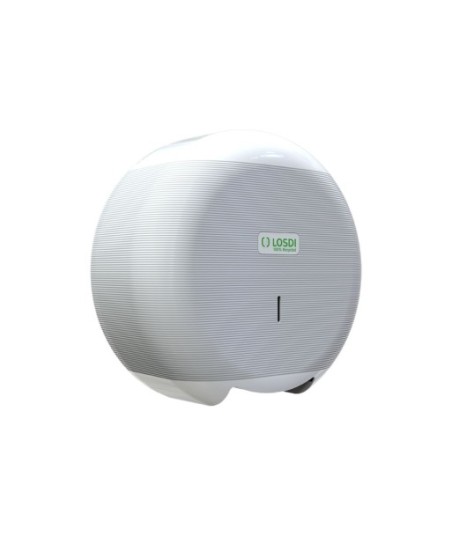 Design, qualidade e funcionalidade. Estas são as três principais características do dispensador de papel higiênico da nova linha ECO-LUXE.¶O dispensador de papel higiênico de tamanho jumbo pode acomodar rolos de papel de até 110 mm de largura por 220 mm de diâmetro, com uma cânula de diâmetro máximo de 45 mm.¶¶É feito de plástico branco 100% reciclado e tem um belo design que intercala superfícies lisas com áreas onduladas que conferem ao produto um estilo único e diferenciador.¶Ele vem equipado com uma fechadura e chave de plástico para facilitar a substituição de consumíveis e proteger o interior do dispositivo contra uso indevido.¶¶A nova linha ECO-LUXE nasceu da vontade de contribuir para a melhoria da higiene nos espaços públicos, proporcionando qualidade, funcionalidade e design a preços competitivos.¶Foi projetado para um desempenho ideal, com base na vasta experiência da LOSDI como uma marca consolidada no campo da higiene profissional e industrial em mais de 45 países.¶Além disso, o seu design diferenciado e marcante deixa entrever os altos padrões de qualidade da LOSDI, permitindo uma dosagem simples e agradável para o usuário.¶¶Largura do rolo de papel: 110 milímetros¶Ø Rolo de papel: Ø externo 220 mm / Ø cânula 45 mm¶Fechadura e chave: Travamento por fechadura e chave de plástico¶Medidas: 274 x 270 x 115 mm¶Material: Plástico 100% reciclado