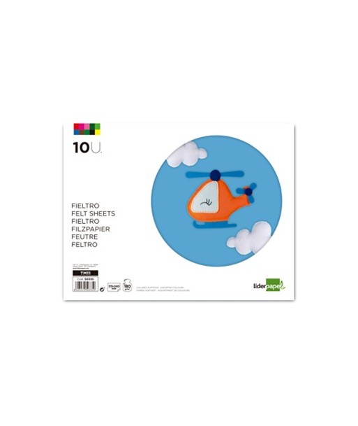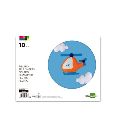 Bloco de trabalhos manuais Papel Feltro ¶210x297mm ¶10 Folhas ¶180gr ¶¶Cores sortidas: ¶Verde (3 tons) ¶Azul (1 tom)¶Vermelho (1 tom)¶Amarelo (1 tom) ¶Rosa (2 tons) ¶Castanho (1 tom) ¶Preto (1 tom)¶