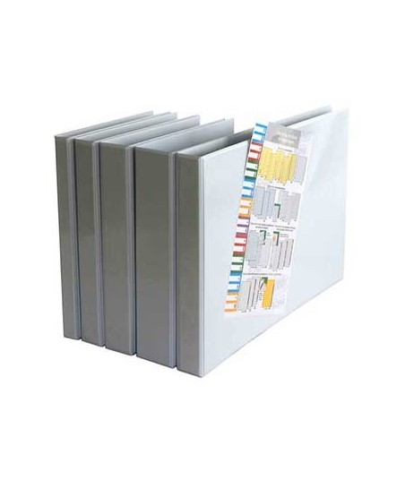 PVC rígido extra-resistente.¶Com capa e lombada personalizáveis.¶Ferragem de argolas em D.¶Lombada de 65mm.