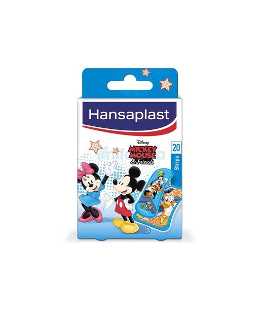 Os pensos Hansaplast Disney Mickey & Friends vão ajudar os mais pequenos a esquecer as lágrimas e a voltar à brincadeira em tempo recorde! Vão adorar poder escolher entre as diferentes personagens com os seus favoritos de sempre. O Pluto, o Mickey, o Pateta, o Pato Donald, a Minnie e a Margarida estão todos prontos para ajudar os mais pequenos a sentirem-se melhor.¶¶Para a proteção de pequenas feridas¶Bem tolerados pela pele¶Remoção indolor¶¶Caixa com 20un