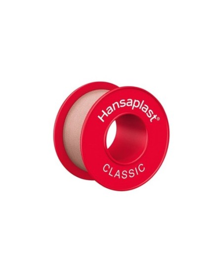 Hansaplast Adesivo Clássico fita de tecido de primeiros socorros, ideal para fixar adesivos e compressas.¶Uma fita de tecido para os primeiros socorros com uma forte adesividade.¶Adaptada para todo o tipo de situações, podendo ser cortada à mão.¶¶Tamanho: 5 x 2,5 cm
