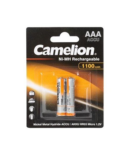 Tensão nominal: 1,2V¶Capacidade: 1100mAh¶IEC: R3¶outros: AAA, Micro, 5503, R03NM¶Dimensões: Ø10.5 x 44.5mm¶pacote: 2 baterias em duplo blister¶