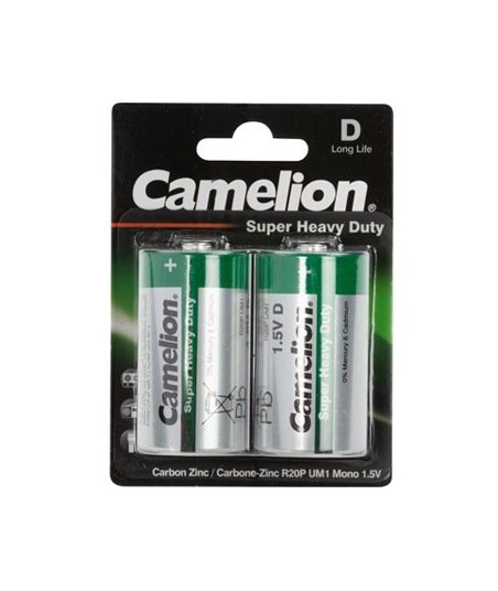 Tensão nominal: 1.5V¶Tipo de capacidade: 8000mAh¶IEC: D (LR20, R20, HR20, KR20, ZR20 ,13A, 13D, UM1, Mono, MN1300, MX1300)¶Composição: Zinc-Carbon (ZnC)¶¶Dimensões: Ø34 x 61mm¶Pacote: 2 baterias em blister¶¶Cor: Verde¶Cor Adicional: Silver¶Altura: 61 mm¶Diâmetro: 34 mm¶Peso: 174 g¶¶¶