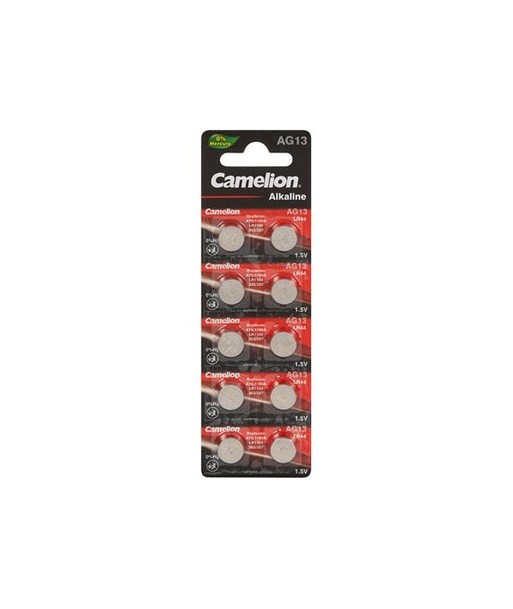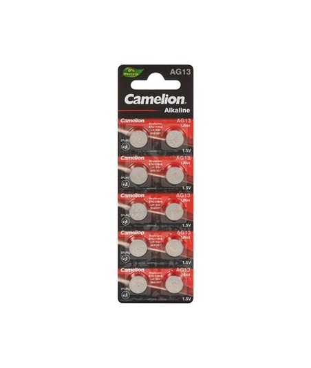 Nº de pilhas: 10¶Tensão: 1.5V¶Capacidade: 125mAh¶Dimensões: Ø11.6 x 5,4 milímetros¶IEC: LR44¶Referência cruzada: A76, AG13, SR44, V357¶¶