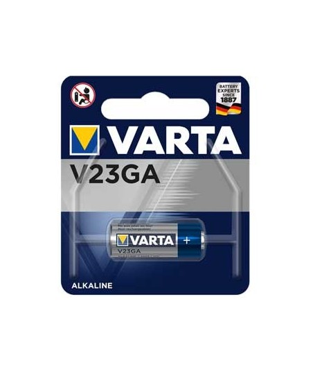Pilha para comandos de garagens, alarmes, etc.¶¶Referência IEC:V23GA¶Tipo: 4223¶Voltagem: 12V¶Sistema eletroquímico: Manganésio primária alcalina (ZN/MNO2) ¶Capacidade: 50mAh¶Altura: 28.5mm¶Diâmetro: 10.3mm¶Peso: 7.7g ¶¶Compativel com:¶23A 23AE 4223 8LR23 L1028 LRV08 MN21 V23GA¶¶Conteúdo da embalagem:¶1x Varta Pilha V23GA / LR23¶¶