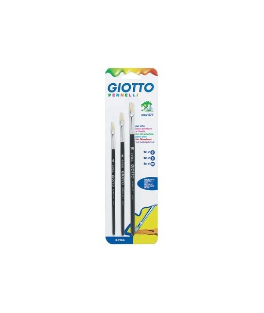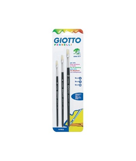 Qualquer seja a tua técnica, Giotto Art 577 tem a resposta!¶¶Pincel para pintura a óleo, cabo em madeira lacada na cor preto, ponta espatulada com cerda natural. ¶¶Pinceis nº 6, 8 e 10