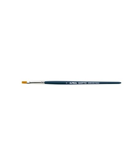 Giotto 600 taklon: a ponta espatulada que serve para tudo.¶¶Pincel de fibra sintética para todas as técnicas de pintura. ¶Com uma ponta de superfície plana e suave, não perde pelo tem um excelente poder de absorção e retenção da cor. ¶¶Perfeito para pintar fundo e cobrir grandes superfícies. ¶Corpo revestido a azul escuro com ponta de metal.¶¶Pincel Nº4¶