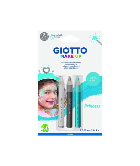 ! OFERTA DE EXPOSITOR na compra de 5 unidades !¶¶Aprende a realizar esta maquilhagem de princesa com os produtos Giotto Make Up.¶Os lápis macios, as cores de maquilhagem coloridas e os bastões de glitter cintilantes soltam a imaginação e inspiram os pequenos. ¶¶Os produtos de maquilhagem Giotto Make Up são seguros, feitos de ingredientes inofensivos e pigmentos de alta qualidade. ¶Dermatologicamente testados, fáceis de usar e muito fáceis de retirar da pele. ¶¶Não é necessário uma camada protectora nem hidratante prévio.¶¶Os lápis são feitas em madeira de cedro com certificação PEFC, com uma mina gigante (diâmetro 6,25). ¶Estão equipados com uma tampa, para que a ponta esteja sempre protegida. ¶Armazene em local fresco e seco, não exceda 35 °C. ¶¶Cores: Branco, Prata, Azul claro¶¶Adequado para crianças com mais de 4 anos¶Com supervisão de adultos¶¶¶