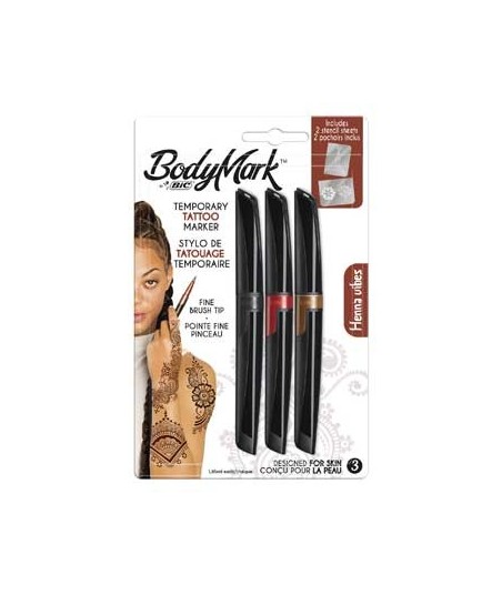 EXPRESSA-TE NA TUA PELE com os marcadores de tatuagem temporária BodyMark da BIC.¶Perfeitas para festivais, eventos desportivos e festas!¶¶Liberta a tua imaginação! Apetece-te desenhar ou escrever algo na pele? Ou preferes experimentar uma tatuagem antes de a tornar permanente? ¶E se experimentasses uma tatuagem só por uma noite, durante um fim de semana com amigos, numa festa ou festival? ¶Os marcadores BodyMark são produtos aptos para utilizar na pele e concebidos especialmente para desenhares tatuagens temporárias. ¶Podes escolher entre oito tons de cores vivas: preto, castanho, vermelho, rosa, roxo, azul, azul-claro e verde. ¶Para além disso, contêm tinta quase inodora que pode durar dias.¶Possuem uma ponta fina e flexível que se ajusta à pressão, para que possas desenhar linhas mais finas ou colorir espaços maiores. ¶¶Cores: Preto, Castanho Henna, Vermelho Henna.¶Ponta traça linhas entre 1.00 e 4.00mm de espessura.¶Oferta de moldes com desenhos para tatuar que podem durar alguns dias.¶Secagem ultra rápida sem manchar.¶¶Dicas: ¶Lava e seca a pele antes de aplicar o produto.¶Para criares a tatuagem, pressiona suavemente para obteres linhas finas e faz um pouco mais de pressão para obteres um traço mais grosso.¶Precisas de inspiração? entra aqui: https://pt.bicworld.com/bodymark-by-bic¶Se tiveres cuidado com a tatuagem, pode durar alguns dias.¶¶Como retirar a tatuagem:¶Queres mudar de tatuagem? Lava-a bem com água e sabão.¶Pode ser necessário lavá-la algumas vezes. Não te preocupes se não sair à primeira vez: a tatuagem não é permanente!¶¶Marcador de tatuagens temporárias seguro para a pele: cumpre com o regulamento de cosméticos. ¶Deve seguir todos os avisos e instruções. Não testado em peles sensíveis.¶