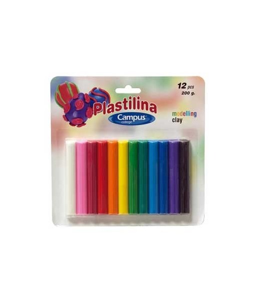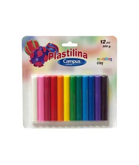 Plasticina para modelar em barra, muito moldável.¶Adequado para uso escolar.¶¶Alisa bem com os dedos. ¶Grande plasticidade e consistência.¶Não seca e pode ser envernizado. ¶Sem glúten. ¶¶As cores podem ser misturadas entre si.¶¶Conteúdo: 200 gramas¶12 cores sortidas