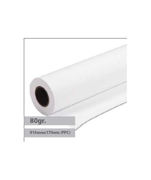 Para plotter. Ideal para impressões de grande qualidade.¶Grande nível de brancura.¶¶Gramagem: 80 g/m²¶Formato: 914mmx170mts¶Mandril: 7,5cm