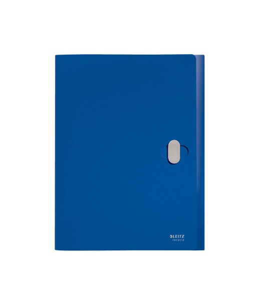 Pasta PP premium, de alta capacidade e design apelativo, ideal para uso diário na escola, escritório e casa.¶Fabricada com 80% de plástico reciclado, 100% reciclável e certificada pelo selo ambiental Blue Angel.¶¶Com a gama ecológica Leitz Recycle, pode melhorar tanto o ambiente do seu escritório como o meio ambiente do nosso planeta.¶¶Solução rápida e prática para transportar ou armazenar um grande número de documentos no escritório, na escola ou em movimento¶3 abas internas, evitando que os documentos caiam¶Capacidade para 250 folhas A4 (80 g/m²)¶Fecho seguro e reciclável, garantindo um transporte seguro dos documentos¶Material opaco, protegendo dados pessoais ou empresariais sensíveis¶Leve, durável e reutilizável¶Apenas etiqueta - sem desperdício adicional de embalagens¶¶Cor: Azul¶Medidas: 38 x 330 x 254¶Formato: A4