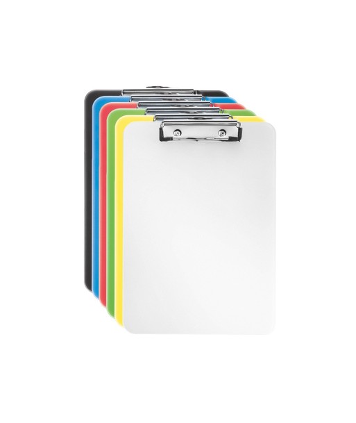 Prancheta de qualidade em cores vivas e design atrativo VIVIDA. ¶Para formato A4.¶¶Papel fixado com segurança através de um clipe metálico robusto¶Com gancho para pendurar onde for necessário¶Capacidade para 80 folhas A4 (80 gsm)¶Material PS opaco e robusto.¶¶Cor: Sortido (Entrega Aleatória)¶Dimensões: 227 x 319 x 17 mm