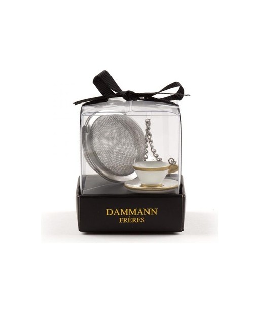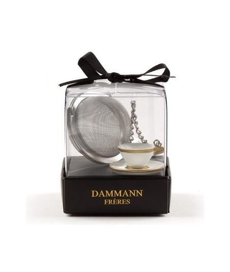 Uma bola de chá chique decorada com a reprodução de uma "mini xícara" de resina. ¶Fabricado em aço inoxidável e malha fina, é adequado para a infusão de todos os tipos de chás.¶Dimensões: Ø 4,5 cm