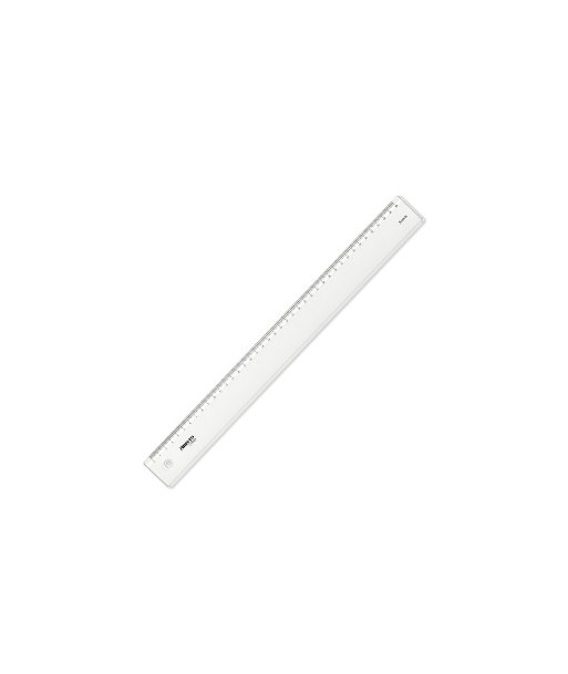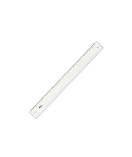 Régua universitária 40 cm, transparente¶¶Fabricado em poliestireno transparente¶Com borda de tinta na parte superior¶Com furo para pendurar¶Embalado em luva protetora de plástico