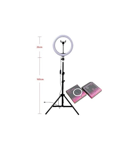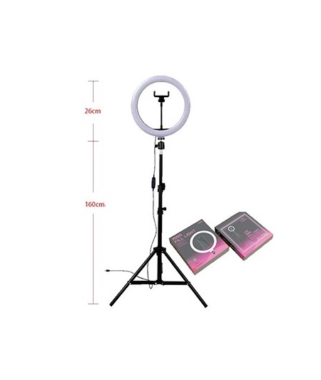 Anel de luz de superfície curva com tripé e porta USB remota para utilização em fotografia, streaming e cinema.¶¶Características ¶1. Led smd. Baixo consumo de energia.¶2. Nenhuma radiação ultravioleta e infravermelha, baixo valor calorífico, seguro e ambientalmente amigável.¶3. Vida útil excede as 50,000 horas.¶4. Braço flexível , pode mover-se livremente e nunca ceder.¶5. Fio longo extra e parafusos resistentes na asa.¶6. Amplamente utilizado em luz de fotografia ao ar livre, luz de preenchimento interior, retrato, moda, arte de casamento, fotografia de publicidade, vídeo comercial, streaming etc.¶¶Suporte do telefone móvel Universal Holder: o suporte giratório do telefone de 360 ° é ideal para a luz do anel. É retrátil e encaixa a maioria dos smartphones do mercado. suporte rotativo multi-direcional, suporte para transmissão ao vivo, embelezando e tirando fotos e outras atividades que exigem várias câmaras.¶¶Controle Bluetooth Selfie: Conecte o telefone via bluetooth, habilitando o photoshooting e videoshooting. a operação intuitiva garante configurações perfeitas em segundos.¶Tubo flexível (tubo gooseneck), é super forte mas incrivelmente flexível. Poderá torce-lo e dobrá-lo para conseguir o ângulo perfeito.¶Iluminação profissional. Melhore as características faciais sob iluminação constante, faça seus olhos brilhar e atraia a atenção dos outros instantaneamente.¶Compatibilidade - Pode ser usado em diferentes ocasiões, perfeito para maquilhagem, iluminação selfie, fotografia de estúdio e de vídeo retrato, fluxos ao vivo, tik tok salões de beleza etc.¶¶Especificações:¶Modos de luz: luz branca, luz quente, luz suave¶Fonte de luz: led de alta qualidade¶Numero de leds: 120 un¶Material da caixa da lâmpada do anel: abs¶Tripé ajustável: 48.9cm-160 cm ¶Temperatura de cor: de 2700k-6500k¶¶Inclui:¶Anel de luz com 120 LED SMD 2835¶Tripé de 1,60mt max.¶Embalagem: Caixa de cartão¶