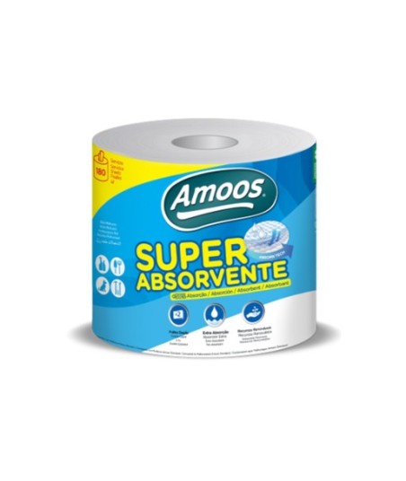 SUPER ABSORÇÃO E MAIS RAPIDEZ¶¶O Multiusos Amoos Super Absorvente, folha dupla, garante +30%* de absorção para a limpeza diária de todos os tipos de superfícies.¶¶A tecnologia Absorb Tech concilia na face superior a resistência - para todas as limpezas diárias - e na face inferior a super absorção e rapidez - pronto a absorver e a salvar as superfícies de qualquer tipo de derrames.¶*Quando comparado com o Multiusos Amoos Super Roll.¶¶Super Absorvente¶Folha Dupla¶Gramagem 18 g/m2¶45mx20,7cm¶180 serviços¶¶Certificações:¶FSC¶EU Ecolabel