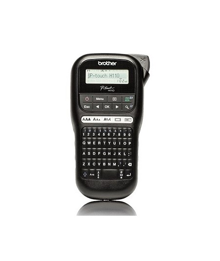 Rotuladora eletrónica de mão com desenho ergonómico para casa ou para o escritório com teclado QWERTY e visor LCD. Cor Preto¶Organiza facilmente ficheiros, CDs, estantes e outros materiais com a rotuladora eletrónica de mão PT-H110 e a ampla variedade de fitas disponíveis para uso no interior ou exterior.¶¶APLICAÇÕES¶Casa: identificação de alimentos, caixas, material escolar¶Escritório: identificação de objetos¶¶Visor LCD¶Velocidade de impressão de 20 mm/seg¶Até 2 linhas de impressão com pré-visualização¶Teclado QWERTY¶Teclas numéricas e de função separadas¶¶Tipo de equipamento: Portátil¶Largura máxima da fita (mm): 12¶Localizações de memória: 15¶Tecnologia: Transferência térmica¶Tipo de utilização: Doméstica, Escritório¶Pilhas alcalinas: Opcional 6 pilhas tipo AA¶Desligar automaticamente: Sim¶Tipo de unidade de corte: Manual¶Modelo da caixa: Portátil¶Máximo de carateres por etiqueta: 80¶Número de teclas: 60¶Impressão em espelho: Sim¶¶CRIAÇÃO DE ETIQUETAS¶Tipos de letra: 3¶Molduras: 15¶Símbolos: 253¶Tamanhos de texto: 3 - Grande, Médio, Pequeno (16, 22, 28, 42 e 56 pontos)¶Estilos de texto: Normal, Negrito, Contorno, Sombra, Sólido, Itálico, Sublinhado, Itálico Negrito, Itálico Contorno, Itálico Sombra, Itálico Sólido¶Larguras de texto: 2x, 1/2, Normal¶¶CONSUMÍVEIS E ACESSÓRIOS¶Transformador de corrente: AD24ES (opcional)¶Tipo de bateria: Tipo AA (LR6/HR6) não incluídas¶Larguras de fita: 3.5, 6, 9, 12mm¶¶DIMENSÕES E PESOS¶Dimensões: 111(L) x 58(P) x 204(A) mm¶Peso: 400 g¶¶INCLUÍDO NA EMBALAGEM¶Manual do Utilizador¶Consumíveis: 1 fita Laminada Preto sobre Branco 12mm x 4m¶Cassetes de fita: TZe