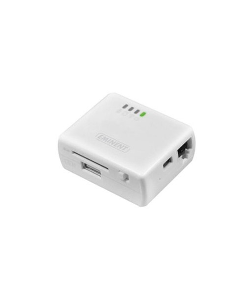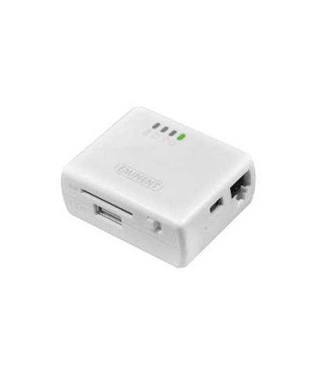 Aceda em casa ou em viagem aos vídeos e fotos sem fio no seu iPad, iPod ou iPhone através do leitor de viagem EM4610 WiFi. ¶Só precisa de ligar seu dispositivo USB ou cartão SD para o leitor de viagem WiFi. ¶Este router compacto de viagem WiFi com funções também de leitor de cartões difunde como um hotspot Wi-Fi e um repetidor Wi-Fi. ¶É possível usar o EM4610 em toda parte, por meio de uma bateria interna.¶¶Armazenamento expansível com cartão SD e USB stick¶O armazenamento em seu iPad, iPod e iPhone é limitado, mas poderá ter todos os seus arquivos armazenados e compartilhá-los. O Leitor de viagem WiFi aumenta a memória do seu iPad, iPod e iPhone usando um cartão SD ou USB stick. Assista e compartilhe seus arquivos com o a aplicação iOS grátis.¶¶Assista os seus arquivos a partir de um stick USB¶iPod, iPad e iPhone não suportam portas USB. Assista e compartilhe todos os seus arquivos a partir de um stick USB sem fio com o seu iPad, iPod e iPhone através do leitor de viagem WiFi, sem a mediação do iTunes.¶¶Assista às suas fotos diretamente.¶Use o EM4610 para assistir às imagens recém-capturadas diretamente no seu iPad, iPod e iPhone, sem a mediação do iTunes. Insira o cartão SD no leitor de viagem WiFi. Assista e compartilhe as suas imagens imediatamente.¶¶Faça backup de seus arquivos¶Assista os arquivos de um dispositivo USB ou cartão SD através do aplicativo iOS especial. Seus arquivos serão mais acessíveis desta forma. Transfira fotos fácilmente do seu iPad, iPod e iPhone para o seu stick USB ou cartão SD.¶Hotspot Wi-Fi: compartilhe a sua ligação de internet¶Como se as características acima não fossem suficientes, o EM4610 tem ainda mais funções. Quando tem acesso à Internet através de uma ligação com fio, apenas o EM4160 cria um ponto de acesso Wi-Fi gratuito. Você só tem que ligar o cabo UTP na porta WAN ao que o EM4610 cria um hotspot Wi-Fi para o dispositivo da Apple. Esta ligação pode ser partilhada com outros dispositivos ao mesmo tempo.¶¶Wi-Fi repetidor: aumenta a sua cobertura de rede sem fio¶O Leitor de viagem WiFi aumenta a cobertura de sua rede sem fio. Desta forma, também vai ter internet sem fio quando estiver fora do alcance da sua ligaçã de Internet sem fio padrão.¶¶Portátil: leve o leitor viagem WiFi junto consigo¶O Leitor de viagem WiFi tem uma bateria interna, de modo que não necessita de uma fonte de energia externa. O Leitor de viagem WiFi pode ser usado em qualquer lugar. Pode fácilmente carregar a bateria através da porta mini USB. Pode verificar o status da bateria através da luz LED.¶¶O projeto original¶O WiFi Reader é muito compacto. Pode fácilmente transportá-lo em viagem. Seu visual moderno faz a do EM4610 o acessório perfeito para seus dispositivos Apple.¶¶IPod ®, iPhone, iPad e iTunes são marcas comerciais da Apple Inc. registadas nos os EUA e outros países.¶¶Leitor de viagem Wi-Fi ¶pronto a utilizar em dois minutos¶crie o seu ponto de acesso Wi-Fi e compartilhe a sua ligação de internet¶router sem Wireless, repetidor, e Acess Point¶conexão sem fio de até 150 Mbps¶¶Dimensões (L x W x H): 60 x 50 x 25 mm¶Compatível com os padrões IEEE 802.11b/g/n ¶LED de energia e Wi-Fi embutido ¶SD / SDHC / SDXC ou unidade flash USB suportado¶Inclui cabo USB 2.0 para carregar a bateria¶Bateria interna recarregável