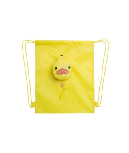 Mochila de corda dobrável para crianças em poliéster 190T com um design alegre de animais.¶¶Com pega de transporte, cordão de fecho automático e reforços laterais a condizer. ¶Tamanho pequeno dobrado em forma de animaizinhos, com cordão e acessório de ajuste a condizer.¶¶Cor: Amarelo¶Medidas: 26,5 x 32,5 cm¶25 gr.