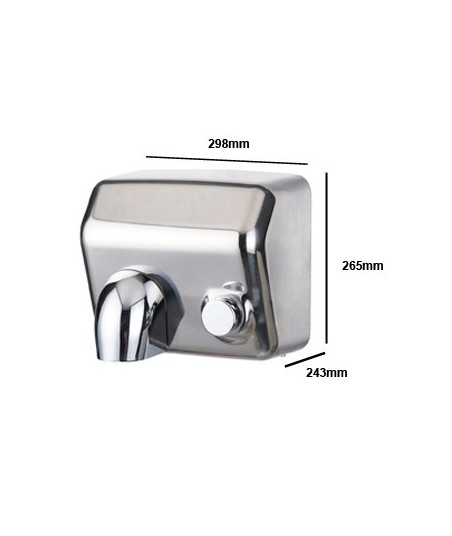 Secador de Mãos Elétrico com Botão 2300W PW-250A Aço