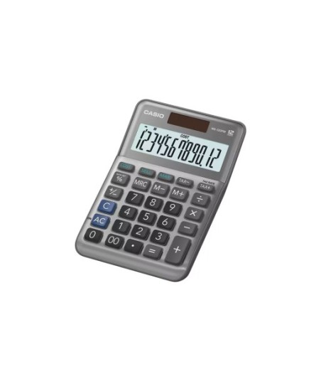 CÁLCULO FÁCIL DOS CUSTOS, PREÇOS DE VENDA E MARGENS¶Excelentes funcionalidades de utilização e design para utilizadores empresariais.¶¶FACILIDADE DE USO¶Ecrã extra grande com números de leitura fácil¶A excelente visibilidade contribui para trabalhos de cálculo precisos e sem erros¶¶Disposição e formato das teclas concebidos para facilitar a introdução¶Disposição intuitiva das teclas e formato das teclas que varia de linha para linha para permitir diferenças no movimento dos dedos¶¶Toque confortável nas teclas que não cansa os dedos (tipo computador de secretária)¶Formato redondo e moldagem do painel fáceis de utilizar.¶¶DESIGN¶Coordenação de cores que cria uma beleza funcional¶Painel frontal em metal que realça o aspeto requintado¶Rico em forma de corpo de expressão¶¶INFORMAÇÕES DETALHADAS¶Tipo de produto: Mini tipo secretária¶Características do produto: Cálculo de impostos, Painel frontal em metal, Teclas de plástico¶Número de dígitos: 12 Digitos¶Visor de cristais líquidos: Ecrã extra grande, Sinais de comando de função, Separadores de milhares de 3 dígitos¶Funções das teclas: Teclado com memória, Mudança de sinal (+/-)¶Memória: Memória independente¶Fonte de alimentação: Energia solar e pilha¶Tamanho (P × L × A): 148.5 × 101 × 27.6 mm¶Peso: 120 g¶¶Cálculo básico: Cálculo básico, Percentagem normal (%), Percentagem da margem de lucro¶Cálculo avançado: Cálculo de impostos, Custo/venda/margem¶