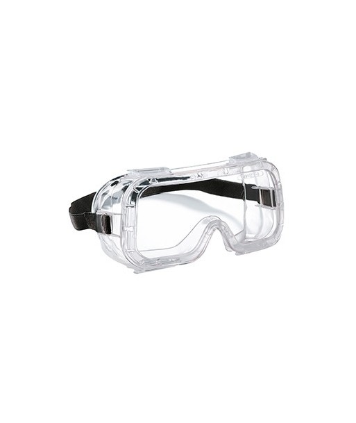 Lente única em policarbonato com tratamento anti-riscos e anti-embaciamento: 1 BT 9¶Ventilação indireta¶Resistente a choque¶Protege contra pó grosso e líquidos¶Elástico¶Cor transparente