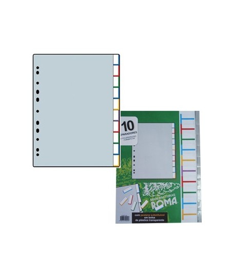 Separadores A4 Plástico c/Pestana 10un Cinzento Roma162