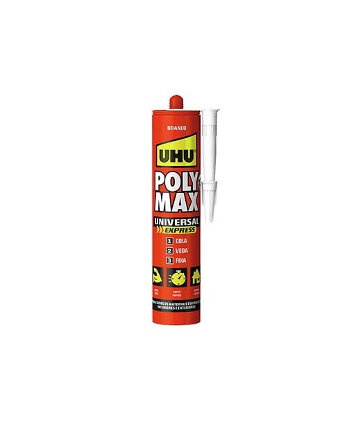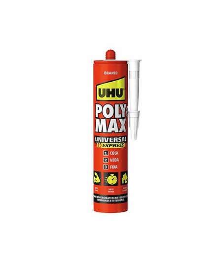 Cola e veda de montagem universal com base na tecnologia SMP exclusiva. Para colar, fixar e vedar quase todos os materiais (de construção) em quase todas as superfícies (tanto superfícies lisas, porosas como não porosas). Extra forte. Pode ser usado em ambientes internos e externos, incluindo debaixo de água.¶¶PROPRIEDADES¶Super Forte e universal¶Adere praticamente em todos os materiais¶Preenche fendas¶Permanentemente elástico¶Para interiores e exteriores¶Rectificável¶Pintável (recomendamos sempre um teste)¶Boa capacidade de enchimento¶Resistente a temperaturas entre -40 °C e + 100 °C¶100% resistente à água, raios UV e todas as intempéries¶Qualidade Polímero MS¶100% cola (não encolhe)¶Também adere a superfícies húmidas, inclusive dentro de água¶Sem solventes, sem ácidos e com fungicida¶Excelente colagem sem primário¶¶CAMPOS DE APLICAÇÃO¶¶COLAGEM: por ex. vidro, pedra, pedra natural, betão, gesso, muitos materiais sintéticos, madeira, aglomerado de madeira, Trespa, ferro, alumínio, zinco, aço, aço inoxidável e outros metais, mosaico cerâmico, cortiça e espelhos.¶FIXAÇÃO: por ex. rodapés, ripados, parapeitos, soleiras, testas de beirais, chapas de revestimento, material de isolamento, gesso cartonado, ornamentos de poliestireno e faixas decorativas.¶VEDAÇÃO: por ex. rodapés (sintéticos), caixilhos de janela, degraus de escada, parapeitos de janela, soleiras de porta e placas de gesso. Também é adequada para vedação de fendas em paredes e tetos.¶¶NÃO ADEQUADA PARA¶Não adequada para PE, PP, PTFE e betume. Ao colar plásticos efetue sempre previamente um teste de aderência. A aderência aos plásticos pode variar dependendo do tipo do material sintético e da qualidade do plástico.¶¶MANIPULAÇÃO¶Antes o uso:¶Aplicação¶Aplique apenas a temperaturas entre +5 °C e +40 °C.¶¶Requisitos da superfície¶Ambas as partes devem ser sólidas e estar limpas e sem poeiras e gorduras. Não necessita de primário. A superfície pode estar húmida, podendo até ser aplicado debaixo de água.¶¶Ferramentas¶Aplique o conteúdo do cartucho usando uma pistola de cola e veda. Se necessário, use um martelo de borracha para bater levemente na superfície de forma a espalhar mais o produto e ajustar a peça.¶¶Preparação¶Antes de usar o cartucho abra a parte superior, cortando o bico de plástico acima da linha com uma faca afiada ou com um x-acto. Fixe o bico aplicador no cartucho e corte num ângulo com o diâmetro desejado. O bico aplicador tem marcas indicativas com diferentes diâmetros para optar de acordo com o tipo de aplicação a efectuar.¶¶Cobertura¶Em cordões: um cartucho emite aprox. 8-15 metros de cola (dependendo do diâmetro do bico aplicador).¶¶Durante o uso:¶Manuseamento da embalagem¶COLAR E FIXAR: Corte o bico aplicador com um diâmetro de pelo menos 0,5 cm.¶SELAR: Corte o bico aplicador num ângulo com a largura de junta desejada.¶¶Instruções de utilização¶COLAGEM E FIXAÇÃO: Aplicar em cordões ou pontos (a cada 10 - 40 cm). Posicionar correctamente o material (tem até 10 minutos para reposicionamento dos materiais) e pressionar com firmeza, podendo ter o apoio de um martelo de borracha. Pode ser manuseado após 30 minutos (a ligação é agora suficientemente forte para suportar transporte ou uma carga leve) dependendo da superfície e das condições ambientais. A resistência final é atingida ao fim de 4h. VEDAÇÃO: Aplicar uniformemente na junta e nos primeiros 10 minutos poderá ajustar e alisar com uma espátula ou dedo humedecido em água e sabão. Obterá a cura após 24h (dependendo da espessura da camada). Ao pintar com tinta alquídica (tintas de óleo, resina), a tinta pode secar mais lentamente.¶¶Pontos a ter em conta¶Os tempos de secagem indicados baseiam-se na colagem de pelo menos um material poroso e uma camada de cola de aprox. 1 mm de espessura. Se estiver a colar dois materiais não porosos e/ou a camada de cola for mais espessa, os tempos de secagem podem ser substancialmente mais longos.¶¶Após o uso:¶Manchas/resíduos¶Use aguarrás para limpar ferramentas e remover resíduos de cola. A cola completamente seca deve ser removida mecanicamente com o auxílio de uma espátula ou x-acto. Os resíduos remanescentes deverão ser retirados com aguarrás ou com o Removedor de Cola UHU.¶¶Condições de armazenamento¶Guarde o recipiente bem fechado num local seco, fresco e ao abrigo do frio extremo.