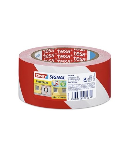 Fita Adesiva PVC Sinalização Vermelho/Branco Tesa 50mmx33mts