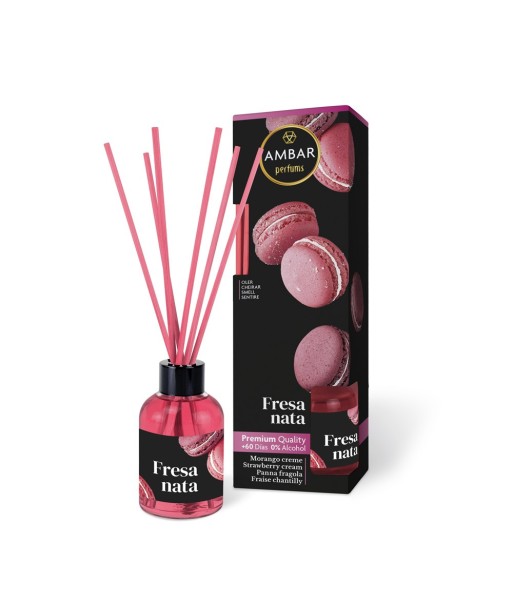 Ambientador Mikado de 45 ml, 0% de álcool com aroma de creme de morango de qualidade superior. ¶Elimina os maus cheiros.¶¶Creme de Morango: ¶Uma nota de topo dominada por notas refrescantes de morango juntamente com notas cremosas de lacticínios. ¶Corpo apetitoso de morangos acompanhado de notas de pastelaria. ¶Fundo dominado por baunilha doce e caramelo.¶¶Duração: +60 dias.