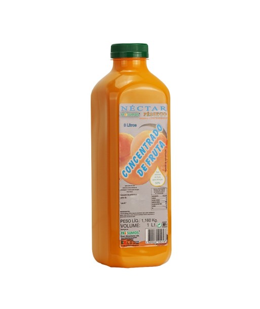 NÉCTAR CONCENTRADO DE PÊSSEGO¶De restaurantes, cafés a refeitórios, eventos ou festas, crie momentos saborosos e refrescantes para os seus clientes.¶Seja qual for o propósito pode provar e confiar na alta qualidade dos nossos sumos.¶¶Gama: Premium¶Destinado à fabricação de produtos alimentícios com dispensadores automáticos ou manuais¶Embalagem: Garrafa plástico 1L/1.160Kg¶Cor: Laranja acastanhado¶Aroma: Doce frutado¶Sabor: Frutado e levemente adocicado¶¶Instruções:¶Adicione 7 doses iguais de água à dose retirada da embalagem e guarde no frio¶Agite antes de usar¶Rende 8 litros / 40 doses 200ml¶Depois de diluído, consumir até 5 dias refrigerado¶¶Ingredientes:¶Sumo concentrado de pêssego (50%), água, açúcar, regulador de acidez: ácido cítrico, sabor natural de pêssego,corante: beta-caroteno e conservante: benzoato de sódio (residual).¶¶Ideal para:¶Empresas que produzem bebidas não alcoólicas e que produzem refrigerantes prontos a beber, hotéis, serviços de self-service, escolas, universidades, hospitais, aldeamentos turísticos, comunidades, complexos desportivos, bares, discotecas, fabricantes de gelados, supermercados para venda ao público e indústrias alimentares de carne e peixe.