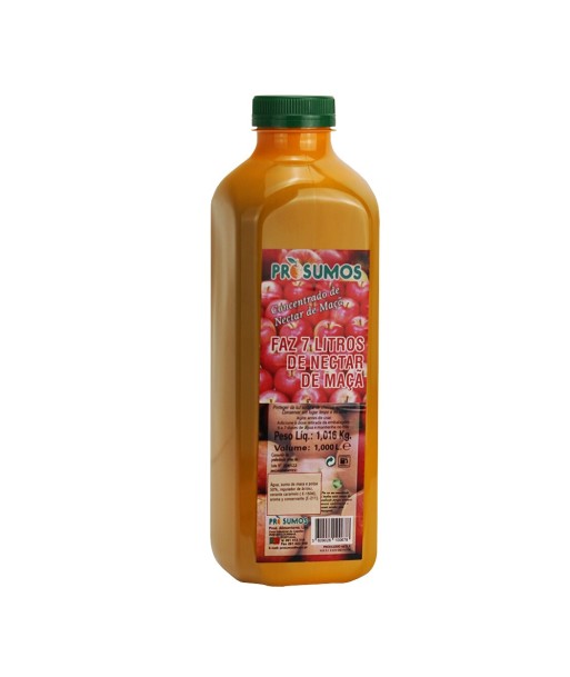 NÉCTAR CONCENTRADO DE MAÇöDe restaurantes, cafés a refeitórios, eventos ou festas, crie momentos saborosos e refrescantes para os seus clientes.¶Seja qual for o propósito pode provar e confiar na alta qualidade dos nossos sumos.¶¶Gama: Premium¶Destinado à fabricação de produtos alimentícios com dispensadores automáticos ou manuais¶Embalagem: Garrafa plástico 1L/1.160Kg¶Cor: Castanho Claro¶Aroma: Doce frutado¶Sabor: Frutado e levemente adocicado¶¶Instruções:¶Adicione 7 doses iguais de água à dose retirada da embalagem e guarde no frio¶Agite antes de usar¶Rende 8 litros / 40 doses 200ml¶Depois de diluído, consumir até 5 dias refrigerado¶¶Ingredientes:¶Sumo e polpa de maçã (50%) à base de concentrado, água, açúcar, regulador de acidez: ácido cítrico, aroma natural de maçã, corante caramelo (E-150d), conservante (E-211).¶¶Ideal para:¶Empresas que produzem bebidas não alcoólicas e que produzem refrigerantes prontos a beber, hotéis, serviços de self-service, escolas, universidades, hospitais, aldeamentos turísticos, comunidades, complexos desportivos, bares, discotecas, fabricantes de gelados, supermercados para venda ao público e indústrias alimentares de carne e peixe.