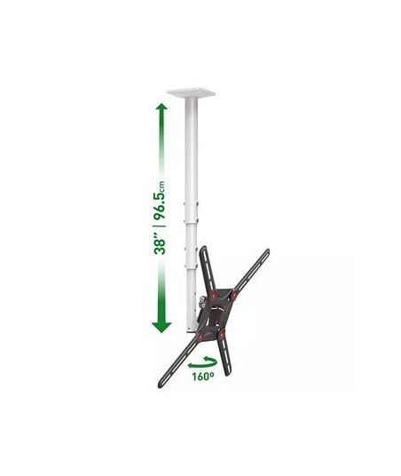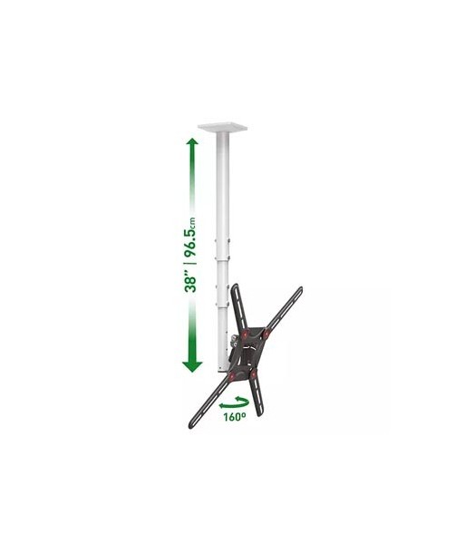 Inclui um mecanismo patenteado para se adaptar a vários tipos de ecrans com estrutura traseira especial. O suporte possui ajuste de altura telescópico, rotação próximo à placa de conexão do ecran em 160° além de uma inclinação livre de ferramentas de 0° a 25°. ¶¶Compatível com TVs com padrão VESA (padrões de furos de montagem em suporte) 100x100, 100x200, 200x100, 200x200, 200x300, 300x200, 300x300, 300x400, 400x200, 400x300, 400x400 mm e não VESA até 400 mm.¶Para telas com peso até 88 lbs/40 kg.¶¶Funções: Full Motion - Telescópico, Giratório e Inclinado¶Tamanho máximo da TV: 29" - 65"/ 74 - 165 cm¶Peso máximo da TV: 40kg¶TV VESA até: 400x400mm¶Tipo de TV: TV plano, TV curvo¶Distância mínima do teto: 16,1" / 41 cm.¶Distância máxima do teto: 38" / 96,5 cm.¶Cor: Branco e Preto¶¶