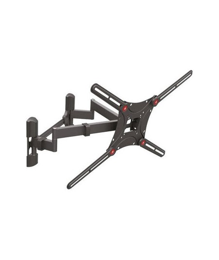 Suporte de parede excepcionalmente estável com braço duplo. Inclui um mecanismo patenteado para se adaptar a vários tipos de ecrans com estrutura traseira especial.  O suporte possui 3 pivôs que: giram próximo à parede 180°, dobram 360°, giram próximo à placa de conexão do ecran 120°, além de uma inclinação livre de ferramentas de -5° a 15°. Compatível com TVs com padrão VESA (padrões de furos de montagem em suporte) 75x75, 100x100, 100x200, 200x100, 200x200, 300x300, 300x400, 400x200, 400x300, 400x400, 600x400 mm e não VESA até 600x¶¶Funções: TV Full Motion - Extensão, rotação e inclinação¶Tamanho máximo da TV: 13" - 90"/ 33 - 229 cm¶Peso máximo da TV: 60kg¶TV VESA até: 600x400mm¶Tipo de TV: TV plano, TV curvo¶Distância mínima da parede: 3,2" / 8,1 cm¶Distância máxima da parede: 17,8" / 45,2 cm¶Instalação de canto para ecrans de até 55"/ 139 cm (dependendo das limitações de instalação).¶Cor: preto