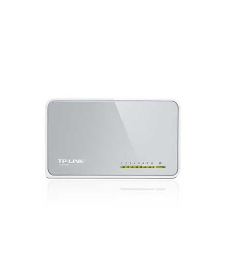 8 portas RJ45 de auto-negociação 10/100Mbps, suporta auto MDI / MDIX¶Tecnologia de Green Ethernet economiza até 60% de energia¶Controle de fluxo IEEE 802.3x fornece transferência de dados confiável¶Caixa de plástico, de mesa ou de montagem na parede¶Plug and play, nenhuma configuração necessária¶¶O que este produto faz¶O Switch Fast Ethernet TL-SF1008D foi projetado para SOHO (Small Office/Home Office) ou usuários de grupos de trabalho. Todas as 8 portas suportam MDI/MDIX automático, não há necessidade de se preocupar com o tipo de cabo, basta conectar e usar. Além disso, com a tecnologia inovadora de eficiência energética, o TL-SF1008D pode economizar até 60%* do consumo de energia e 70% do material de embalagem pode ser reciclado, tornando-o uma solução ecologicamente correta para sua rede de negócios.¶¶Alta performance¶O switch Fast Ethernet TL-SF1008D fornece 8 portas RJ45 de negociação automática de 10/100 Mbps. Todas as portas suportam a função Auto MDI/MDIX, eliminando a necessidade de cabos crossover ou portas Uplink. Apresentando arquitetura de comutação sem bloqueio, o TL-SF1008D encaminha e filtra pacotes em velocidade máxima de fio para máxima taxa de transferência. Com 10K Jumbo frame, o desempenho de transferências de arquivos grandes é melhorado significativamente. E o controle de fluxo IEEE 802.3x para o modo Full Duplex e a contrapressão para o modo Half Duplex aliviam o congestionamento do tráfego e fazem o TL-SF1008D funcionar de forma confiável.¶¶Protocolos e Normas IEEE 802.3, IEEE 802.3u, IEEE 802.3x CSMA/CD¶Interface 8 Portas 10/100Mbps, Auto-Negociação, Auto-MDI/MDIX¶Quantidade de ventoinhas Sem ventoinha¶Fonte de alimentação Adaptador de energia externo (saída: 5.0VDC / 0.6A)¶¶Dimensões (L x P x A) 134,5*79*22,5mm¶Consumo máximo de energia 2,05 W (220 V/50 Hz)¶¶Conteúdo da embalagem:¶Guia do usuário ¶Adaptador de alimentação ¶Switch de mesa de 8 portas 10/100 Mbps