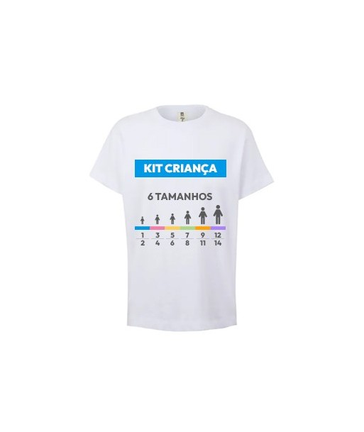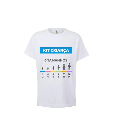 Ideal para empresas que tenham de validar ou mostrar vários tamanhos.¶¶Kit composto por 6 t-shirts brancas de criança:¶¶1x T-Shirt Criança Algodão 155g Branco Tamanho 1/2 ¶1x T-Shirt Criança Algodão 155g Branco Tamanho 3/4 ¶1x T-Shirt Criança Algodão 155g Branco Tamanho 5/6¶1x T-Shirt Criança Algodão 155g Branco Tamanho 7/8¶1x T-Shirt Criança Algodão 155g Branco Tamanho 9/11¶1x T-Shirt Criança Algodão 155g Branco Tamanho 12/14¶