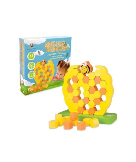 Acreditamos que brincar é a melhor forma de as crianças explorarem e conhecerem o mundo que as rodeia, por isso criamos brinquedos educativos que potenciam o seu desenvolvimento cognitivo, social e emocional, de uma forma divertida e lúdica.¶¶Com os brinquedos AMBARSCIENCE, assumimos o compromisso de proporcionar momentos inesquecíveis de descoberta, felicidade e de aprendizagem aos mais pequenos. Comprometermo-nos com o desenvolvimento das novas gerações é também contribuir para a preservação do meio que as rodeia. Assim, cada vez mais, os nossos brinquedos são produzidos com materiais amigos do ambiente e certificação FSCTM.¶¶Abelha Teimosa¶IDADE RECOMENDADA: + 3 anos¶Competências desenvolvidas: Pensamento Crítico, Motricidade Fina e Relacionamento Interpessoal ¶¶Não podes deixar cair a abelha... senão perdes! Diverte-te com este jogo de estratégia de 43 peças em madeira e desafia a tua família e amigos. ¶¶Inclui manual educativo com sugestões para jogares e curiosidades sobre as abelhas.