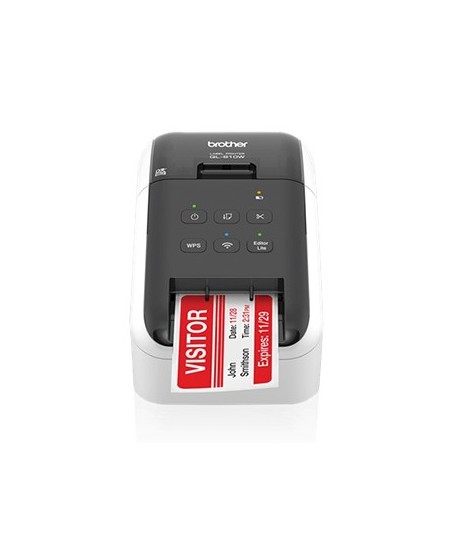 A Brother QL-810Wc é uma impressora de etiquetas de alta velocidade que imprime etiquetas diretamente desde um PC, Mac, Smartphone ou tablet mediante USB ou Wi-Fi, assim como etiquetas de 2 cores (preto e vermelho).¶¶Permite imprimir etiquetas de tamanho personalizado até um metro de comprimento utilizando o cortador integrado e os rolos de etiquetas contínuas, convertendo-se na opção ideal para escritórios, grupos de trabalho, salas de correio e receções.¶Graças ao seu avançado mecanismo de impressão e ao seu rolo de etiquetas especial, também pode imprimir etiquetas que podem incluir as cores preto e vermelho sem necessidade de tinta ou toner.¶Por último, poderá desenhar e imprimir as suas próprias etiquetas graças ao software integrado P-touch Editor Lite. ¶É muito fácil de usar: apenas tem que conectar a impressora ao computador, clicar no ícone para iniciar o software e poderá ¶começar a desenhar e imprimir as suas etiquetas.¶¶EQUIPAMENTO E IMPRESSÃO¶Tecnologia de impressão: Térmica direta ¶Resolução de impressão: 300 x 300ppp ¶Velocidade máxima de impressão: 110 etiquetas por minuto ou 176mm por segundo¶Dimensões de etiqueta: 12mm - 62mm ¶Largura máxima de impressão: 60.96mm ¶Comprimento mínimo da etiqueta: 12.7mm ¶Comprimento máximo da etiqueta: 1 metro ¶Tipo de sensor: Refletivo ¶Cortador: Sim (corte total tipo guilhotina) ¶Tipo de consumível: Rolos DK (DK etiquetas précortadas/DK rolo contínuo)¶¶PAINEL DE CONTROLO¶Botões: Ligado/Alimentação/Corte/P-touchEditorLite¶¶CONECTIVIDADE¶USB: USB versão 2.0 (tipo B) ¶Compatibilidade iOS e Android: Sim (Incluindo AirPrint)¶¶MEMÓRIA¶Flash (para templates de etiquetas): 6MB ¶Localizações de memória (para templates de etiquetas): 99¶¶Alimentação interna: 220-240VAC ¶Modo de repouso automático Sim¶¶Dimensões: 125(L)x 234(P)x 145(A) mm ¶Peso: 1.12kg¶¶CONTEÚDO INCLUÍDO ¶Impressora DK-11201 (100 etiquetas) ¶Rolo contínuo DK-22251 (5metros--62mm) ¶Cabo USB ¶Cabo de alimentação AC ¶Documentação¶¶