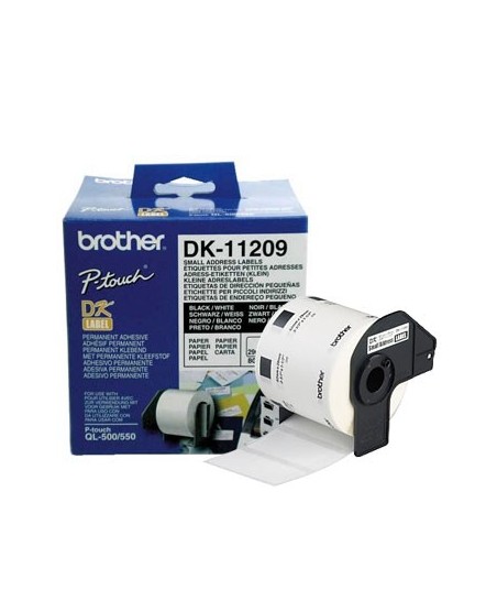 Etiquetas pré-cortadas de direção pequenas (Papel térmico). 800 etiquetas brancas de 29 x 62 mm¶¶O Rolo de etiquetas pré-cortadas DK11209 (texto preto sobre fundo branco) está desenhado para imprimir etiquetas com um tamanho de 29x62 mm à máxima velocidade, sem desperdiçar nenhuma. ¶A qualidade dos materiais utilizados assegura uma impressão clara e legível, juntamente com um adesivo de qualidade. ¶Pode incorporar de forma rápida e simples: imagens, logotipos, códigos de barras, datas ou qualquer outra informação.¶¶Dispositivos relacionados:¶¶¶Brother QL-500¶Brother QL-500A¶Brother QL-500BS¶Brother QL-500BW¶Brother QL-500 Series¶Brother QL-550¶Brother QL-560¶Brother QL-560 Series¶Brother QL-560VP¶Brother QL-560YX¶Brother QL-570¶Brother QL-580¶Brother QL-580N¶Brother QL-580 Series¶Brother QL-600¶Brother QL-600B¶Brother QL-600G¶Brother QL-600R¶Brother QL-650TD¶Brother QL-700¶Brother QL-710 Series¶Brother QL-710W¶Brother QL-710WSP¶Brother QL-720NW¶Brother QL-800¶Brother QL-810W¶Brother QL-820NW¶Brother QL-820NWB¶Brother QL-820 Series¶Brother QL-1050¶Brother QL-1050N¶Brother QL-1060N¶Brother QL-1060NX¶Brother QL-1100¶Brother QL-1100NWB¶Brother QL-1100 Series¶Brother QL-1110¶Brother QL-1110NWB¶