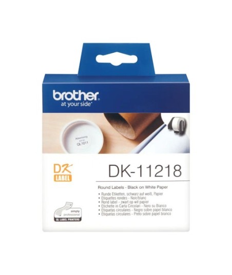 Etiquetas pré-cortadas circulares (papel térmico). 1.000 etiquetas brancas de 24 mm¶¶O Rolo de etiquetas pré-cortadas DK11218 (texto preto sobre fundo branco) está desenhado para imprimir etiquetas circulares de 24mm la máxima velocidade, sem desperdiçar nenhuma. A qualidade dos materiais utilizados assegura uma impressão clara e legível, juntamente com um adesivo de qualidade. Pode incorporar de forma rápida e simples: imagens, logotipos, códigos de barras, datas ou qualquer outra informação.¶¶Dispositivos Relacionados:¶¶Brother QL-500¶Brother QL-500A¶Brother QL-500BS¶Brother QL-500BW¶Brother QL-500 Series¶Brother QL-550¶Brother QL-560¶Brother QL-560 Series¶Brother QL-560VP¶Brother QL-560YX¶Brother QL-570¶Brother QL-580¶Brother QL-580N¶Brother QL-580 Series¶Brother QL-600¶Brother QL-600B¶Brother QL-600G¶Brother QL-600R¶Brother QL-650TD¶Brother QL-700¶Brother QL-710 Series¶Brother QL-710W¶Brother QL-710WSP¶Brother QL-720NW¶Brother QL-800¶Brother QL-810W¶Brother QL-820NW¶Brother QL-820NWB¶Brother QL-820 Series¶Brother QL-1050¶Brother QL-1050N¶Brother QL-1060N¶Brother QL-1060NX¶Brother QL-1100¶Brother QL-1100NWB¶Brother QL-1100 Series¶Brother QL-1110¶Brother QL-1110NWB¶¶