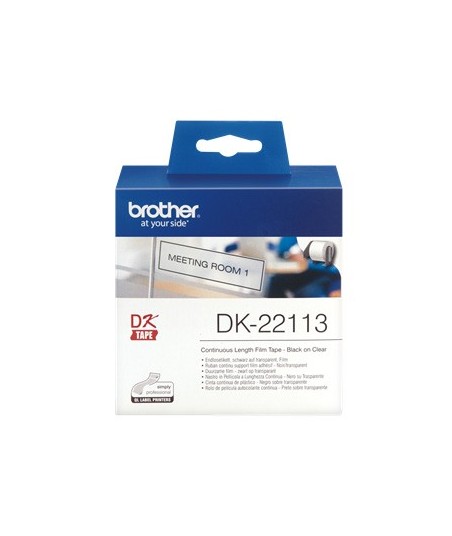 Rolo de fita contínua para etiquetas autocolantes de tamanho personalizado. Fita contínua de película plástica (transparente). Largura: 62 mm. Comprimento: 15,24 m¶¶A Fita contínua DK22113 (texto preto sobre fundo transparente) permite criar etiquetas com tamanhos personalizados. O material é película plástica, mais fina e leve que o autocolante convencional. O material plástico da superfície dá maior resistência que as etiquetas de papel e um toque mais suave. Desenhada para uma identificação temporária, o adesivo foi desenvolvido para evitar que a etiqueta se descole antes do pretendido. O fundo transparente permite identificar objetos e sinalizar alterando o menos possível o elemento sobre o qual se colam as etiquetas. Se o comprimento da informação a incluir na etiqueta varia, as fitas contínuas são a melhor opção. Pode incorporar de forma rápida e simples: imagens, logotipos, códigos de barras, datas ou qualquer outra informação.¶¶Dispositivos Relacionados:¶¶Brother QL-500¶Brother QL-500A¶Brother QL-500BS¶Brother QL-500BW¶Brother QL-500 Series¶Brother QL-550¶Brother QL-560¶Brother QL-560 Series¶Brother QL-560VP¶Brother QL-560YX¶Brother QL-570¶Brother QL-580¶Brother QL-580N¶Brother QL-580 Series¶Brother QL-600¶Brother QL-600B¶Brother QL-600G¶Brother QL-600R¶Brother QL-650TD¶Brother QL-700¶Brother QL-710 Series¶Brother QL-710W¶Brother QL-710WSP¶Brother QL-720NW¶Brother QL-800¶Brother QL-810W¶Brother QL-820NW¶Brother QL-820NWB¶Brother QL-820 Series¶Brother QL-1050¶Brother QL-1050N¶Brother QL-1060N¶Brother QL-1060NX¶Brother QL-1100¶Brother QL-1100NWB¶Brother QL-1100 Series¶Brother QL-1110¶Brother QL-1110NWB¶¶¶