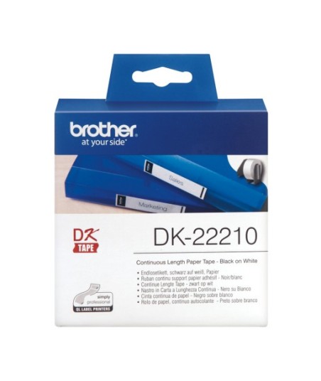 Rolo para criar etiquetas autocolantes de tamanho personalizado. Fita contínua de papel térmico (branca). Largura: 29 mm. Comprimento: 30,48 m¶¶A fita contínua DK22210 (texto preto sobre fundo branco) permite criar etiquetas com tamanhos personalizados. Se o comprimento da informação a incluir na etiqueta varia, as fitas contínuas são a melhor opção. Pode incorporar de forma rápida e simples: imagens, logotipos, códigos de barras, datas ou qualquer outra informação.¶¶Dispositivos Relacionados:¶¶Brother QL-500¶Brother QL-500A¶Brother QL-500BS¶Brother QL-500BW¶Brother QL-500 Series¶Brother QL-550¶Brother QL-560¶Brother QL-560 Series¶Brother QL-560VP¶Brother QL-560YX¶Brother QL-570¶Brother QL-580¶Brother QL-580N¶Brother QL-580 Series¶Brother QL-600¶Brother QL-600B¶Brother QL-600G¶Brother QL-600R¶Brother QL-650TD¶Brother QL-700¶Brother QL-710 Series¶Brother QL-710W¶Brother QL-710WSP¶Brother QL-720NW¶Brother QL-800¶Brother QL-810W¶Brother QL-820NW¶Brother QL-820NWB¶Brother QL-820 Series¶Brother QL-1050¶Brother QL-1050N¶Brother QL-1060N¶Brother QL-1060NX¶Brother QL-1100¶Brother QL-1100NWB¶Brother QL-1100 Series¶Brother QL-1110¶Brother QL-1110NWB