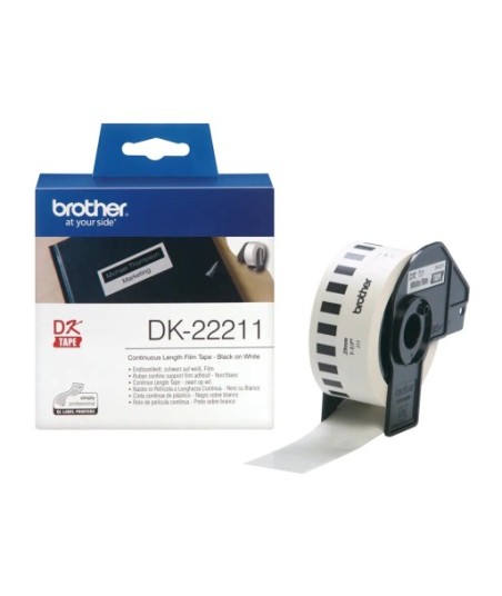 Rolo para criar etiquetas autocolantes de tamanho personalizado. Fita contínua de película plástica (branca). Largura: 29 mm. Comprimento: 15,24 m¶¶A fita contínua DK22211 (texto preto sobre fundo branco) permite criar etiquetas com tamanhos personalizados. O material é película plástica, mais fina e leve que o autocolante convencional. O material plástico da superfície dá maior resistência que as etiquetas de papel e um toque mais suave. Desenhada para uma identificação temporária, o adesivo foi desenvolvido para evitar que a etiqueta se descole antes do pretendido. Se o comprimento da informação a incluir na etiqueta varia, as fitas contínuas são a melhor opção. Pode incorporar de forma rápida e simples: imagens, logotipos, códigos de barras, datas ou qualquer outra informação.¶¶Dispositivos relacionados:¶¶Brother QL-500¶Brother QL-500A¶Brother QL-500BS¶Brother QL-500BW¶Brother QL-500 Series¶Brother QL-550¶Brother QL-560¶Brother QL-560 Series¶Brother QL-560VP¶Brother QL-560YX¶Brother QL-570¶Brother QL-580¶Brother QL-580N¶Brother QL-580 Series¶Brother QL-600¶Brother QL-600B¶Brother QL-600G¶Brother QL-600R¶Brother QL-650TD¶Brother QL-700¶Brother QL-710 Series¶Brother QL-710W¶Brother QL-710WSP¶Brother QL-720NW¶Brother QL-800¶Brother QL-810W¶Brother QL-820NW¶Brother QL-820NWB¶Brother QL-820 Series¶Brother QL-1050¶Brother QL-1050N¶Brother QL-1060N¶Brother QL-1060NX¶Brother QL-1100¶Brother QL-1100NWB¶Brother QL-1100 Series¶Brother QL-1110¶Brother QL-1110NWB¶¶